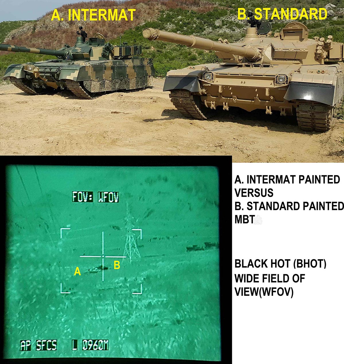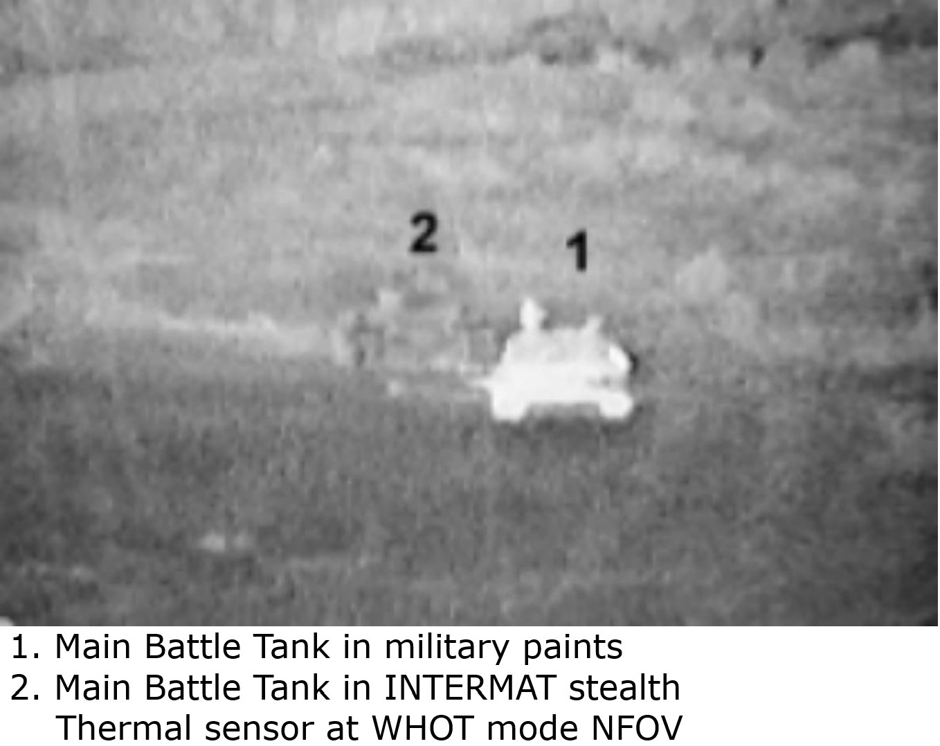 Masking a tank's thermal/IR signature makes it difficult to both detect & target it. Intermat painted tank is degraded to a low-grade blurred target that fades into the background clutter like chameleon getting very hard to detect and engaged.
